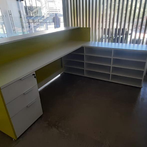 ESTACIONES DE TRABAJO · ESTACIÓN DE CAFÉ · RECEPCIÓN · MUEBLES ESPECIALES